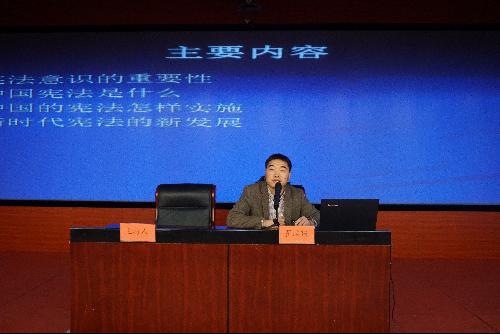 宣誓后,中国社会科学院法学博士翟国强老师为大家做了题为《弘扬宪法精神增强宪法意识——中国特色社会主义宪法理论与实践》的报告。