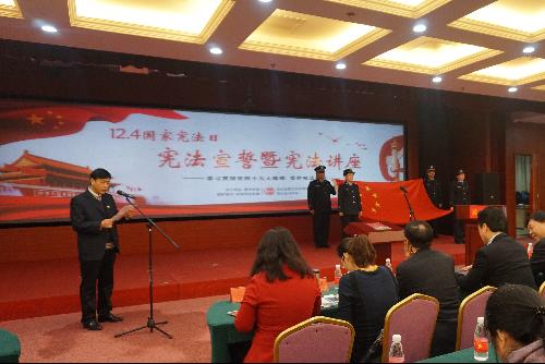 12月4日,区依法治区领导小组办公室组织成员单位的主管领导和政法系统的代表120余人在区政府第三办公区多功能厅进行宪法宣誓活动。?
